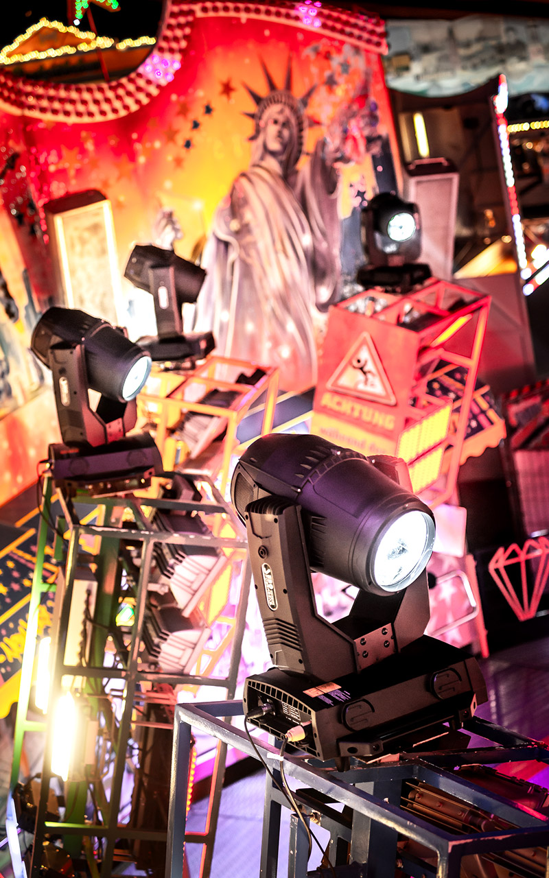 Erika Dreher erkannte das Potential hinter dem "Projekt 17" der Firma Huss und schuf 1985 zusammen mit "afaw Design" ein nie dagewesenes Gesamtkunstwerk aus rasanter Action, Licht-Show und Disco-Sound.