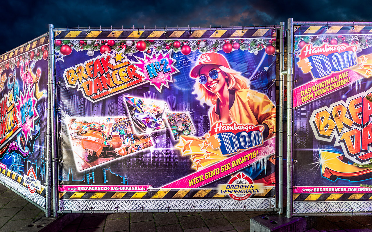 1985 – die Initialzündung: der welterste „BREAK DANCER“ der Firma Dreher & Vespermann feiert seine Premiere auf der Bremer Osterwiese. Mit seiner außergewöhnlichen bisher nie dagewesenen spektakulären und aufwändigen Ausstattung und rasanter Fahrweise wird der „BREAKER“, wie er kurz genannt wird, sofort auf allen deutschen Festplätzen zu DEM Action-Karussell.